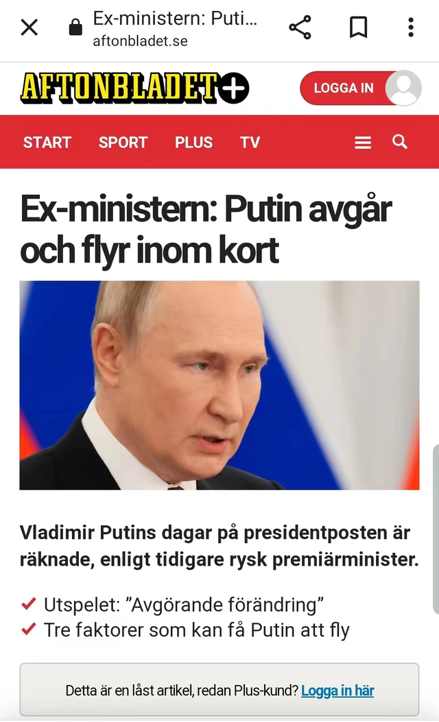 正是在这种背景下,有瑞典媒体称普京已经准备辞职跑路了。