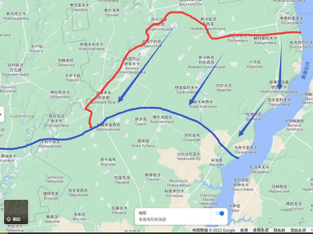 赫尔松市区方向情况稍好,即使安东诺夫大桥不能通行(估计没人敢坐火车慢悠悠的从铁路桥撤退吧?),架设浮桥相对还是比较容易的(海老师有得忙了),再不行还可以自由泳嘛.....