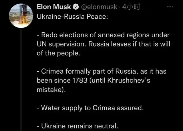 值得一提的是,向来不甘寂寞的马斯克近日为俄乌冲突提出了一个很馊的方案,大意是俄占区在联合国的监督下重新公投,克里米亚正式归于俄罗斯云云。
