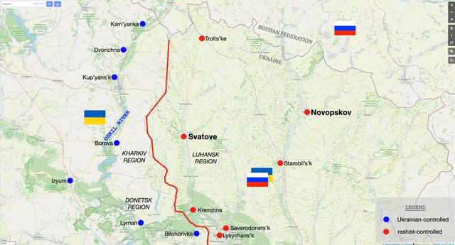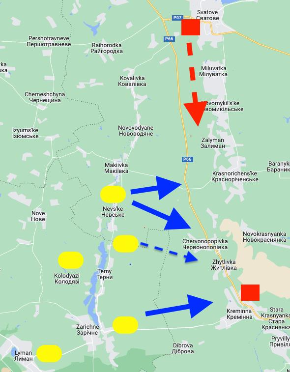 我在昨天的文章中提到过,奥斯基尔河流域的所有俄军、伪军基本都已撤退到了斯瓦托夫,准备依靠克里米纳—斯瓦托夫—特罗伊茨克(Troits'ke)这道防线阻止乌军东进。。