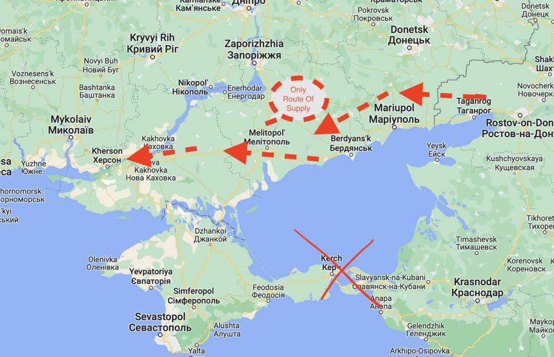 战争开始之后,这座大桥一直是俄军在赫尔松乃至整个南部战场的主要补给通道,一旦其铁路和公路桥梁被摧毁,南线俄军的补给将会受到致命性的打击,甚至可能不战而溃(当然,这还需要另外一个条件,我们后面再讲)。