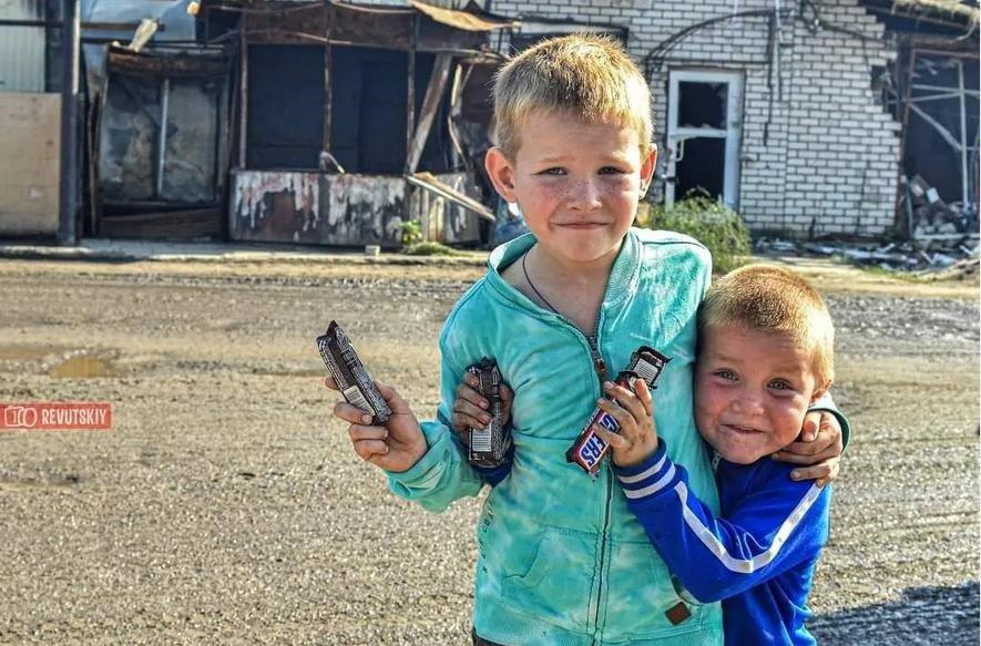 这张图片拍摄于伊久姆一个刚刚被解放的小镇,主人公是两个小男孩。