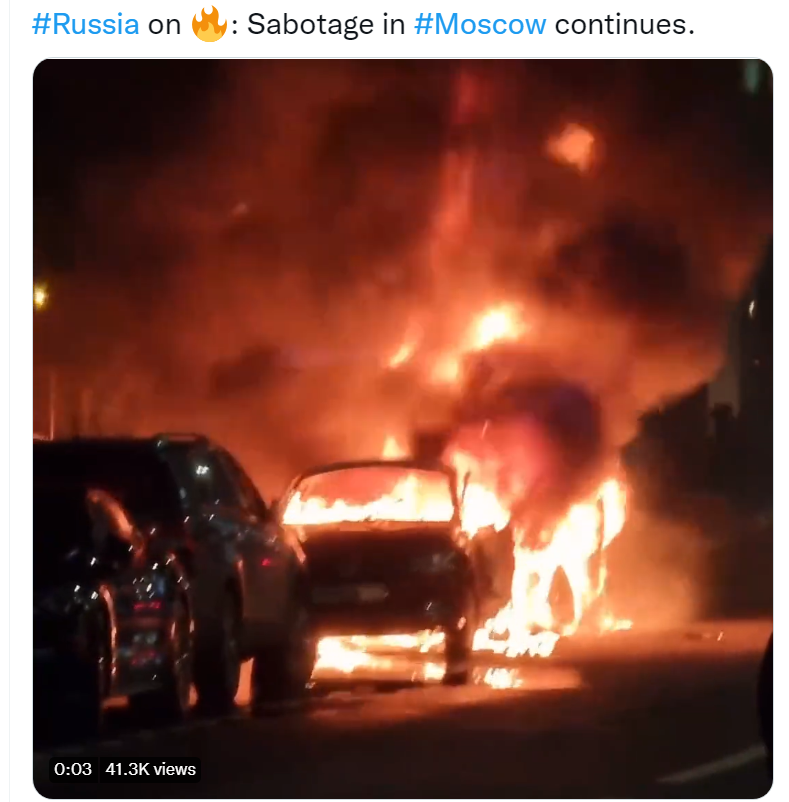 今天是普京70大寿的日子,在莫斯科,反战的人们通过点燃城市里的汽车、加油站、建筑物等方式,为普京70岁生日“献礼”;