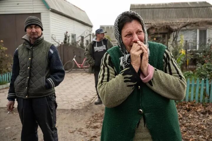 64 岁的安东尼娜·乌斯季缅科哭着讲述俄军占领赫尔松期间的生活。