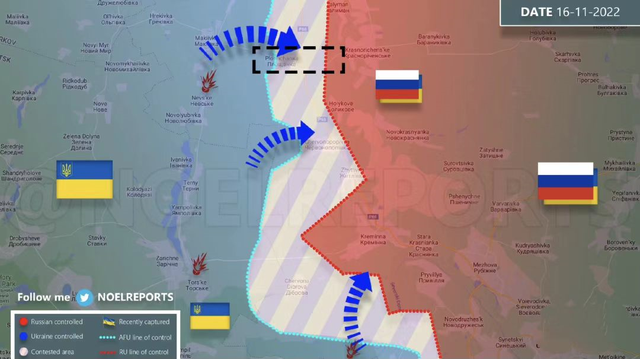 在克里米纳方向,乌军继续保持强大的攻势,俄罗斯消息人士不断表示,Ploshchanka周围的局势十分困难的。有消息称乌军已经越过P66高速公路,推进至Krasnorichens'ke的郊区。