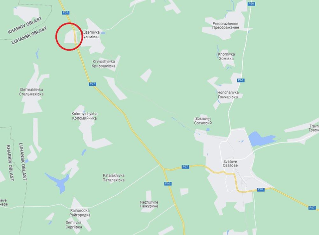 这个小镇位于P07高速公路的正西方向,紧挨着Kuzemivka,后者目前也正处于乌军的攻击之中。