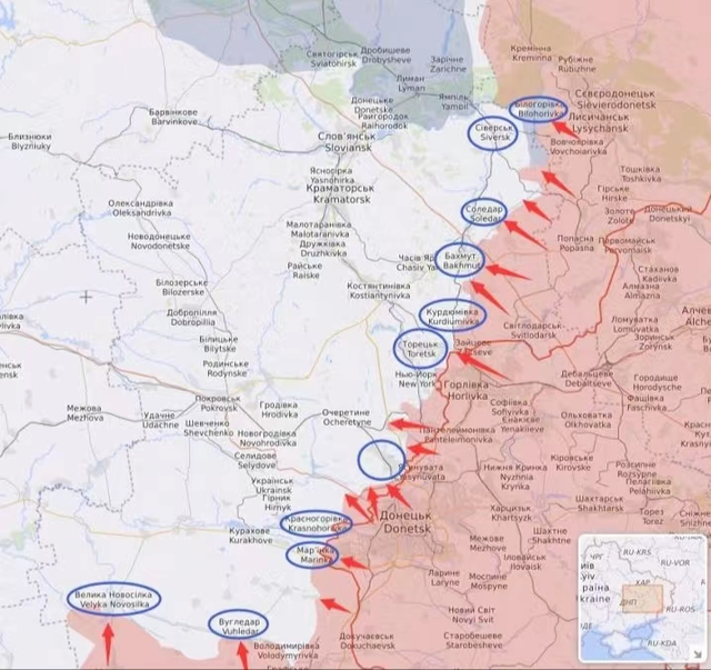 根据最新的消息,经过9个月的苦战,Avdiivka周边的俄军攻入了M-04高速公路北侧的Opytne、Vodiane等村镇中,但我认为他们离从南北两翼包抄Avdiivk乌军的目标还很远。