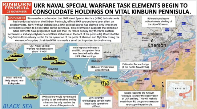 在赫尔松方向,截止目前,乌军还没有完全占领金本半岛,有消息称有3个定居点还控制在俄军手里。
