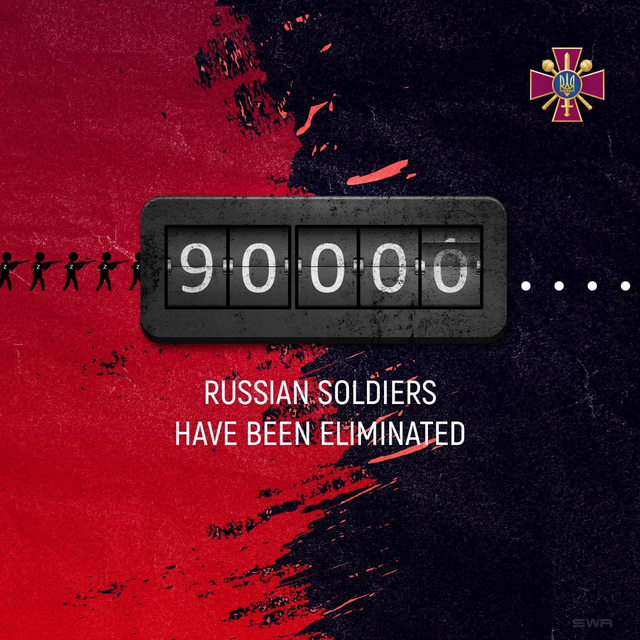 过去24小时,俄军新增阵亡650人,使其总阵亡人数突破9万大关,达到了90090人。