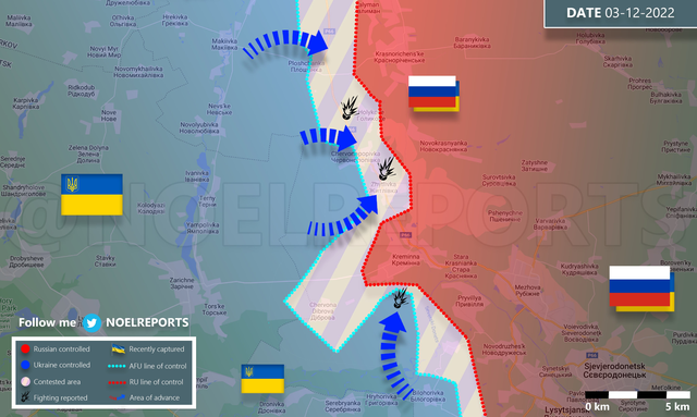 克里米纳如今正面临乌军南北夹击之势,南部大片森林早已经被乌军占据,乌军开始从南部向克城进攻。在克里米纳以北,由于p66号高速公路上的chervonopopivka被乌军控制了一半,克里米纳与斯瓦托夫的连接已经被切断了。