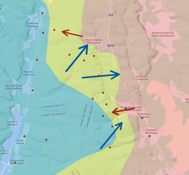 克里米纳的攻防战已经进入了关键时期,双方在Ploschanka - Chernopopivka一线拉锯中,乌军可能未能进入镇区,但俄军也无法将乌军赶出镇外的高地。