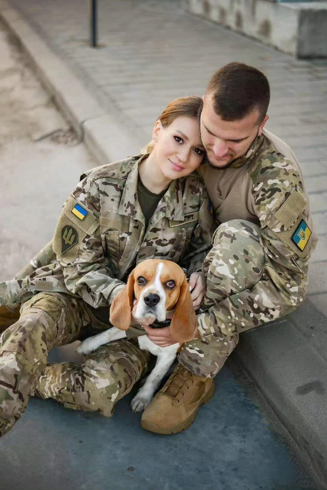 一对乌军中的情侣和他们的狗狗一起,享受难得的安宁。