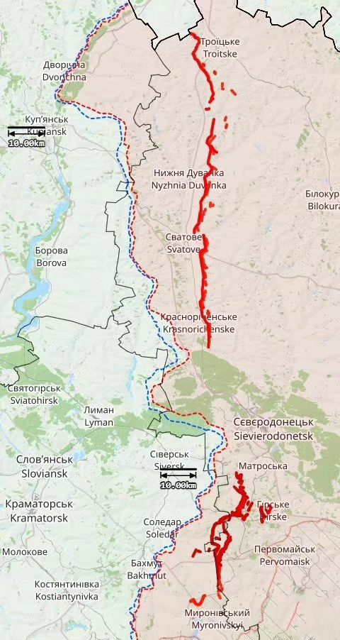 下图是第三方军事机构绘制的俄军完整龙牙防线,快要从北到南贯穿整个顿巴斯了,不得不说,俄罗斯人的基建水平还是很可以的,战壕挖得相当不错,他们应当是希望凭借这条防线顶住乌军的冬季攻势,为训练更多的军队争取时间。