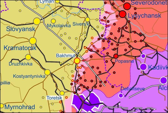 目前巴赫姆特的两条主要补给路线已经开始受到威胁了。