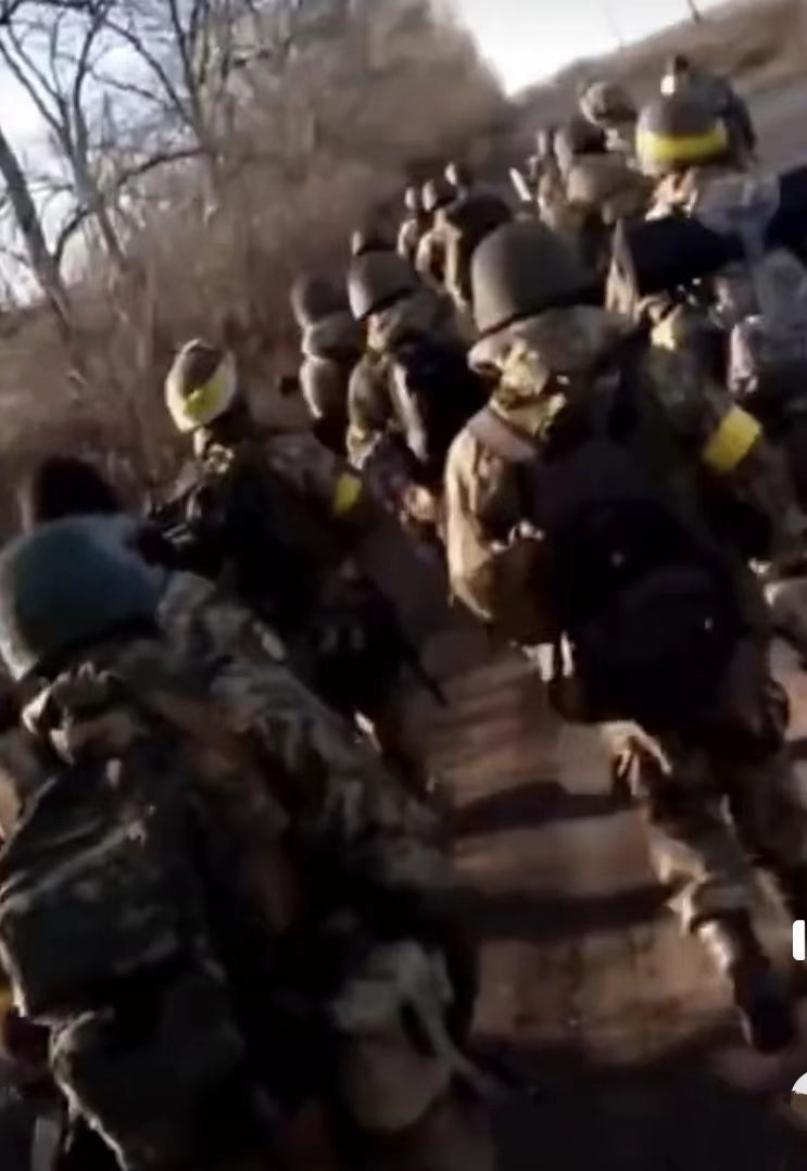 乌军大队人马在光天化日下行军,简直不拿俄罗斯空天军“干部”——能干仗的队伍。