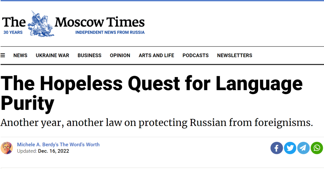 据莫斯科时报报道,俄罗斯最近出台了一项新的法律,要消灭俄语中的外来词汇。