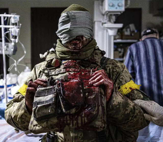 一位在巴赫穆特战场受伤的乌军战士,坚持要拍下这张照片。