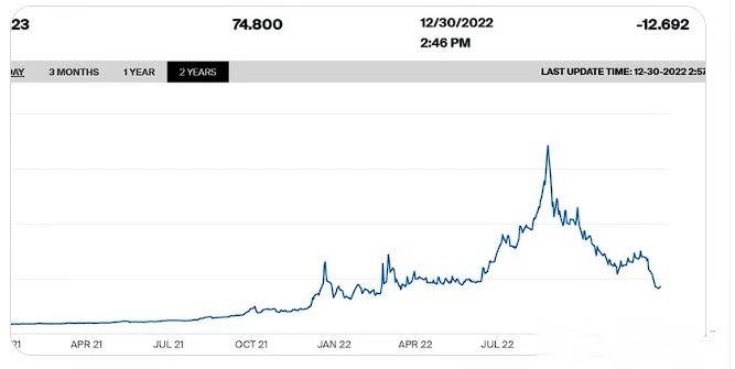 冬季马上要过去一半了,欧洲天然气价格跌到了75欧元。不但跌破战前价格,已经跌破了一年前的价格。