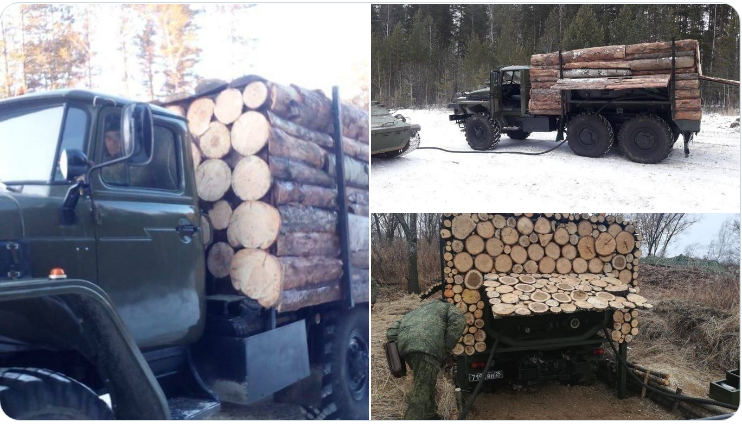 俄罗斯开始用原木伪装自己的军事燃料运输车辆。