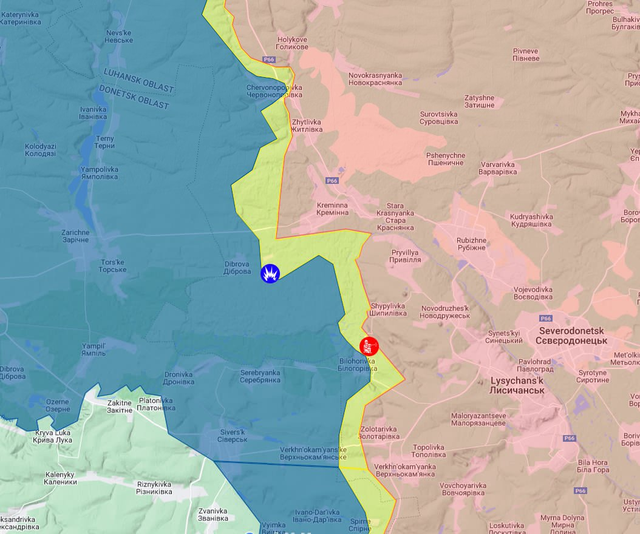 在斯瓦托夫-克里米纳方向,乌军对Kuzemivka发起了一次夜间进攻,这间接证明他们已经控制了Noveselivske。此外,乌总参提到了Dibrova以东的Kuzmyne的炮击消息,这可能暗示乌军正在该方向推进。