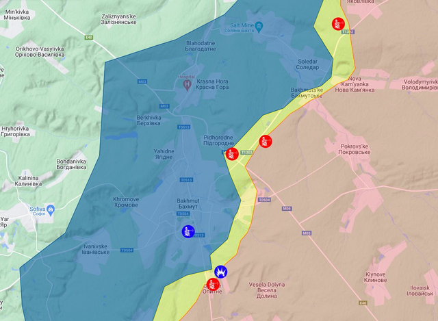 在巴赫穆特,俄军正在巴赫穆特以东沿M03高速公路向Pidhorodne方向推进,但被乌军击退。同样的情况似乎也发生在苏勒达尔以东地区,俄军目前正向盐矿区推进。
