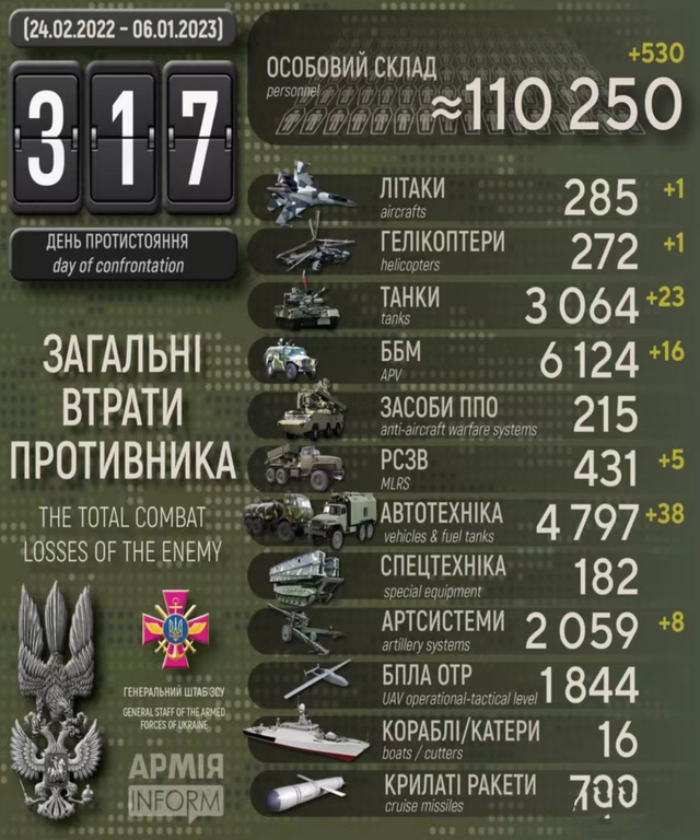 过去24小时,俄军新增阵亡530名人,并有1架战机、1架直升机,以及惊人的23辆坦克、16辆装甲车、5套火箭发射系统遭到摧毁。