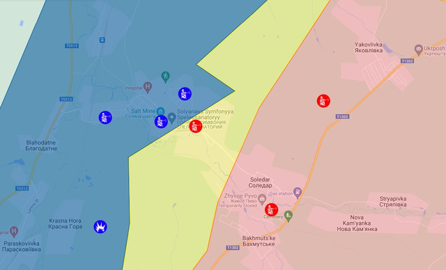 乌克兰记者尤里·布图索夫今天上午从盐矿发来消息,这说明那里目前仍然控制在乌军手里——此前有报道称,一群瓦格纳雇佣军昨天闯入了盐矿。