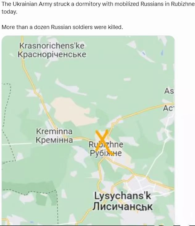 此外,乌克兰军队今天还袭击了克里米纳附近卢比日内的一个据点, 十多名俄罗斯士兵被杀。