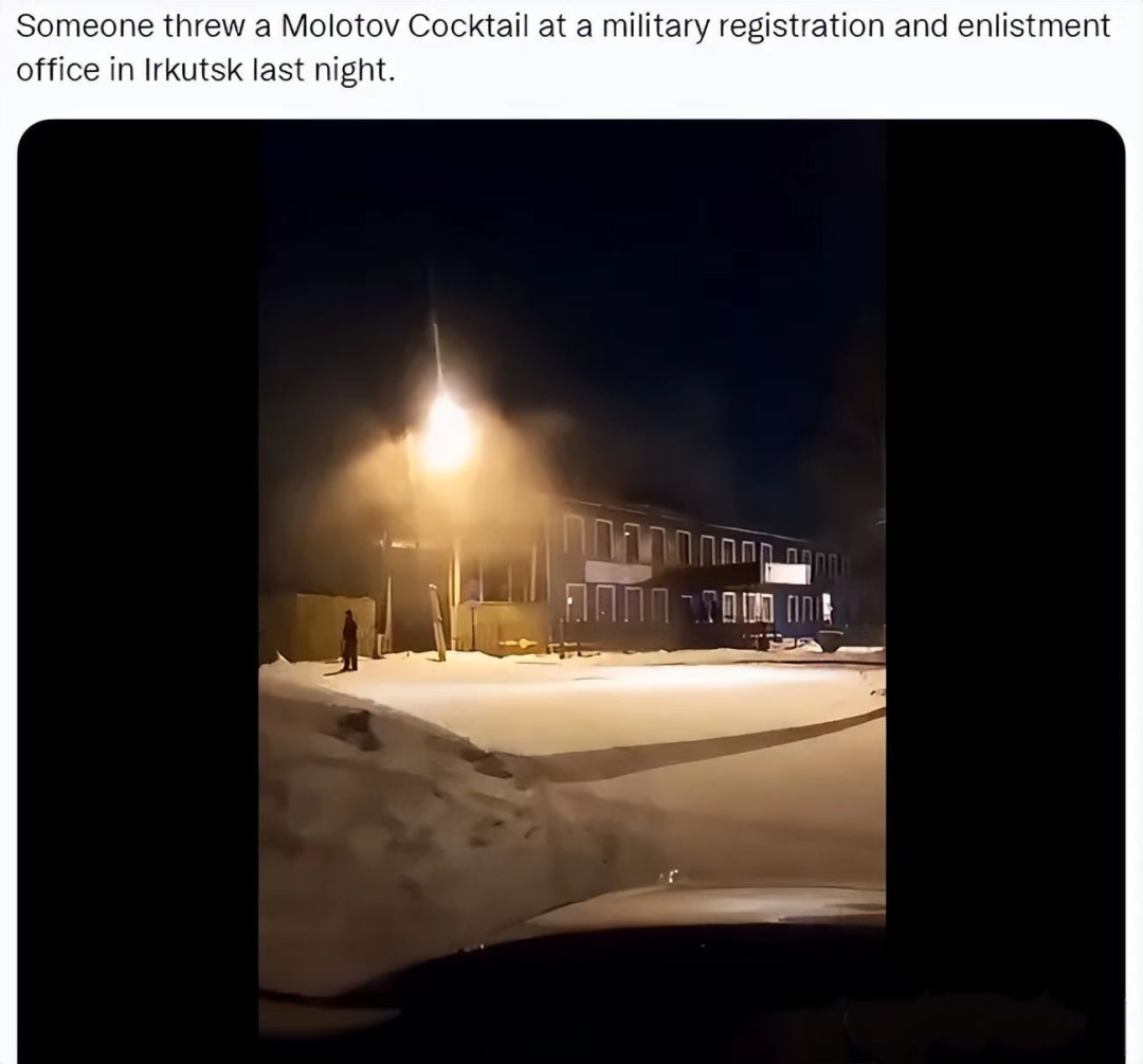 有人在伊尔库茨克的一个军事登记和征兵办公室扔了一枚燃烧弹。