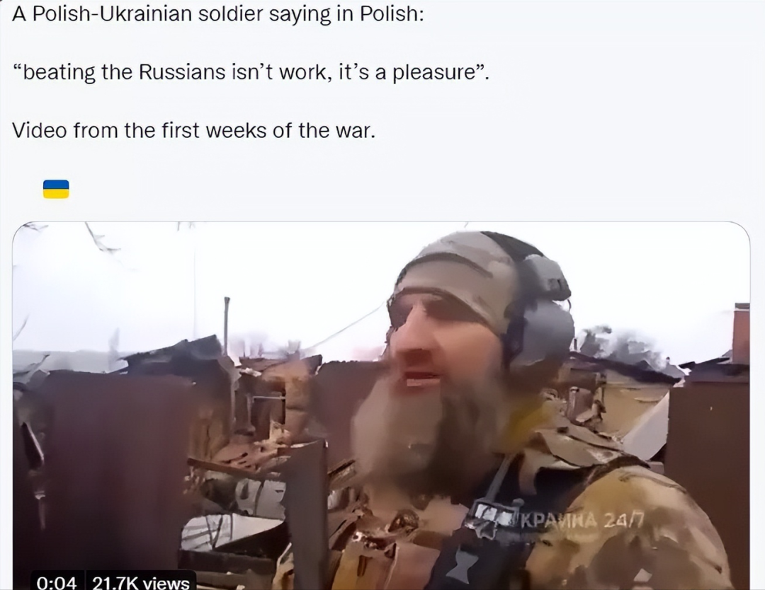 一名波兰裔乌克兰士兵用波兰语说:“击败俄罗斯人不是工作,而是一种乐趣”。