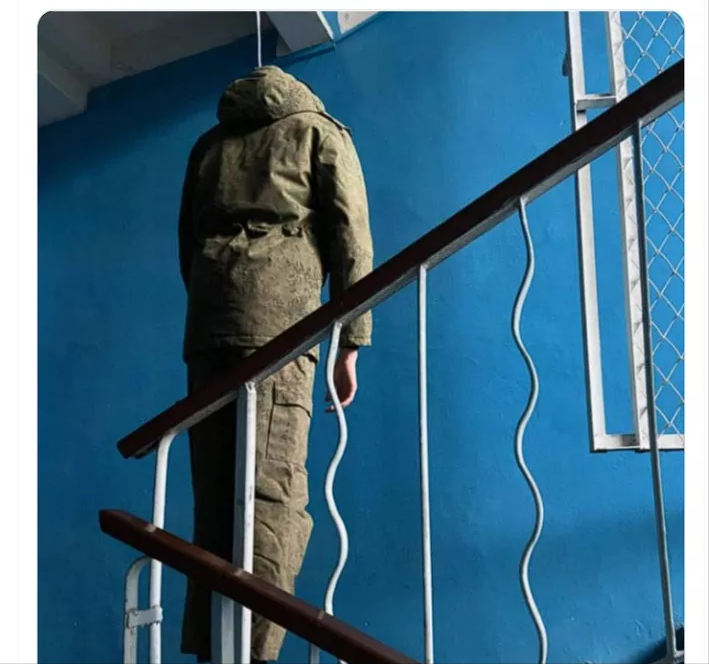 在摩尔曼斯克地区动员兵基地不远处,发现又一位俄罗斯士兵在一座行政大楼的入口处上吊。