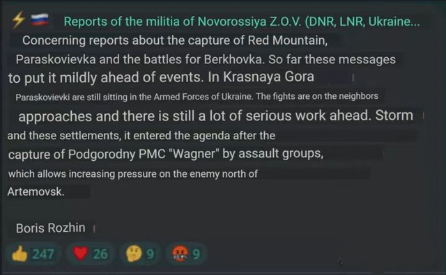 而俄方放出的“俄军占领Blahodatne、Krasna Hora”的谣言,就连俄罗斯的军事博主都不信。