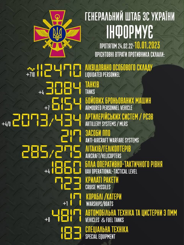 2023年1月10日,俄乌战争进入第321天。