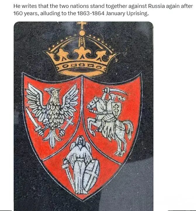 泽连斯基感谢波兰决定在未来几周内向乌克兰派遣 74 辆坦克。并说,两国在 160 年后再次站在一起对抗俄罗斯(指1863年的一月起义)。