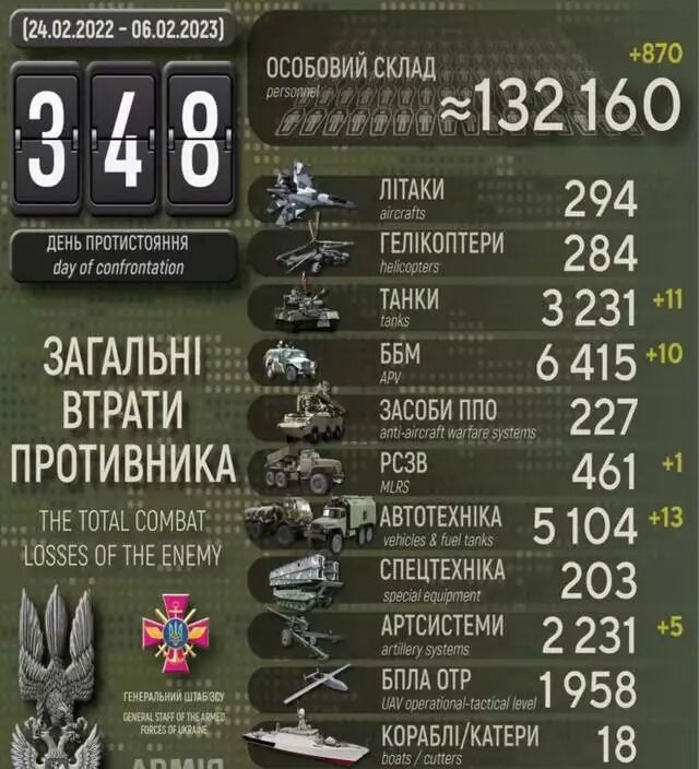 昨日俄军新增阵亡高达870人,并有11辆坦克、10辆装甲运兵车以及5门火炮遭摧毁。