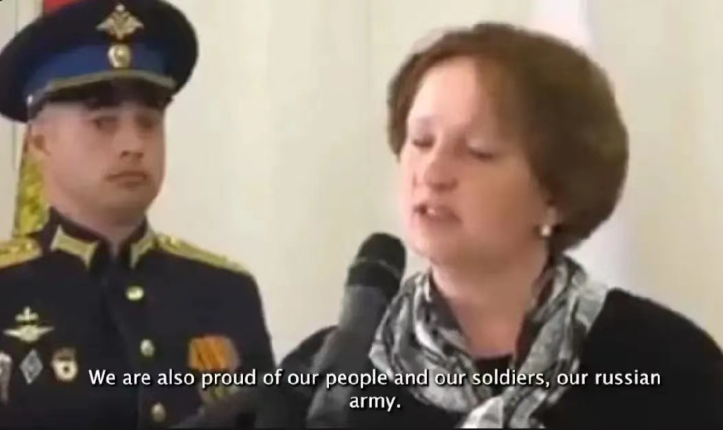 图一,一位俄罗斯母亲在儿子的葬礼上慷慨陈词,为战争、为普京、为军队自豪。