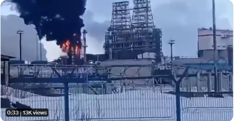 俄罗斯日常大火,在俄罗斯联邦下诺夫哥罗德地区,一家炼油厂起火。