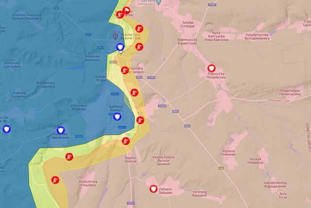 在巴赫穆特南部,乌军已经控制了Ivanivske-Stupochky的局势,T-0504暂时无忧。而在Opytne以西,战斗正在激烈进行之中,没有取得突破。
