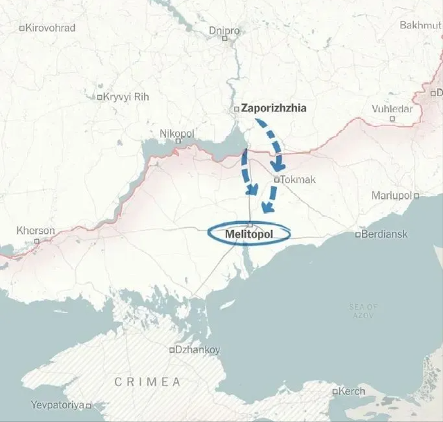 梅利托波尔一线的俄军占领区缺乏纵深,大部分都在海马斯的射程内,且它位于两条重要高速公路和一条关键铁路线的交汇处,对南线俄军的补给至关重要,因此它最可能成为乌克兰反攻的优先目标。
