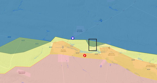 目前乌军已经成功地在Mykilske稍西北的村舍中心取得了立足点,并击退了俄军的反扑。