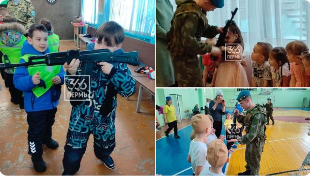 在俄罗斯PERM地区的幼儿园,小朋友们开始学习使用枪械了。