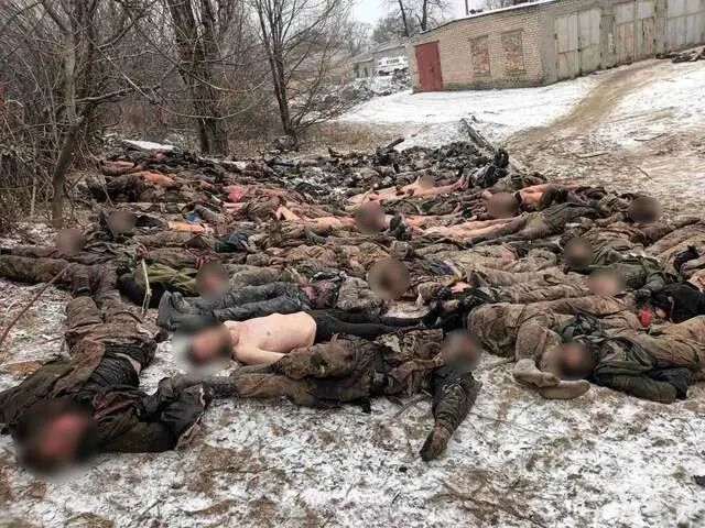 瓦格纳头目普里戈津公布了一张昨天在巴赫姆特附近阵亡的瓦格纳雇佣兵的照片,看起来有约100名军人尸体的样子。