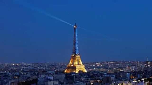 这一天,巴黎的埃菲尔铁塔亮起了蓝黄色,一周年了,乌克兰仍在人间。