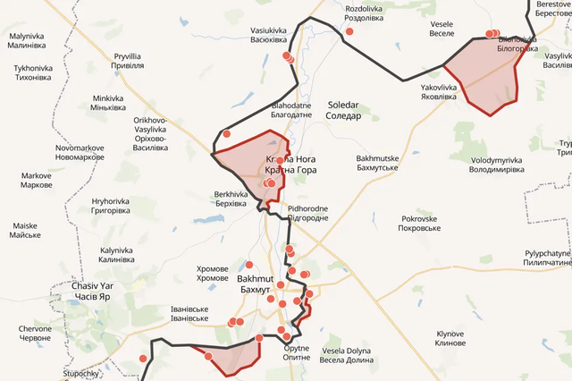 在巴赫穆特方向,俄军已经深入到巴赫穆特的北部郊区,并且穿越过巴赫穆特-斯洛维扬斯克之间的主干道,来到Berkhivka和Yahidne,不过目前还没有任何迹象显示他们已经占领了这两个村庄,战斗仍在进行之中。