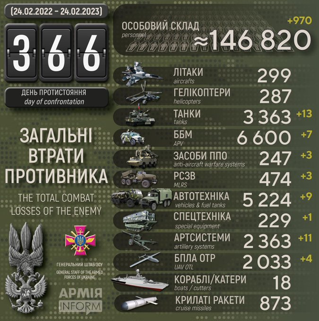 2023年2月24日,俄乌战争进入第366天。