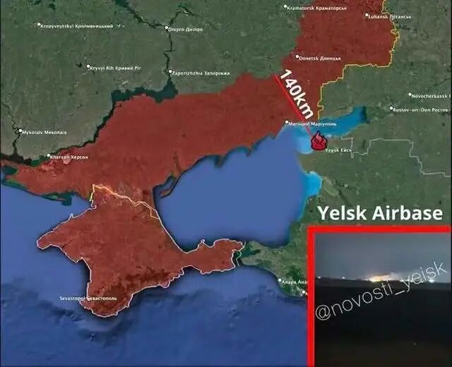 此外,与马里乌波尔隔海对岸的叶尔斯克俄军空军基地,昨晚传来巨大的爆炸声,附近民众将基地爆炸的照片传到网上。