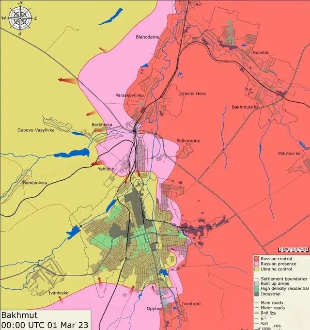 下面这张地图,比较清晰地反映了巴赫穆特当下的态势。