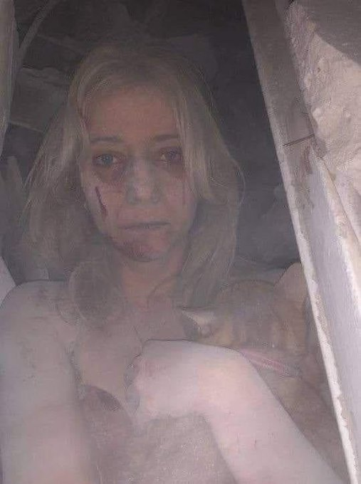 乌克兰救援人员在扎波罗热的废墟中,化了5个小时拯救出了一位名叫Kateryna的女子,她一直都用身体保护着自己的猫猫。