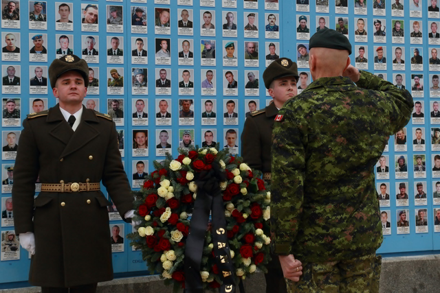 加拿大国防军参谋长韦恩上将到访基辅,并向乌克兰烈士墙献花圈。