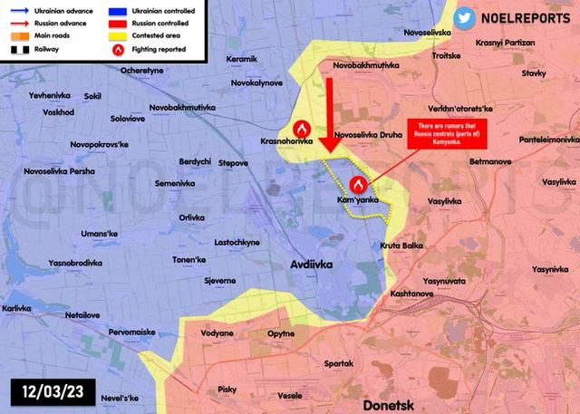 在Avdiivka,有消息称俄军已经控制了北部的Krasnohorivka和Kam'yanka,但到目前为止,此消息还没有得到证实。